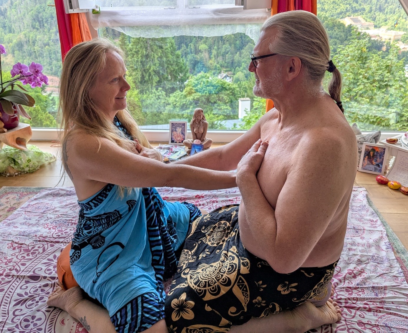In achtsamen tantrischen Körperübungen, Atemarbeit, sanfter Berührung und geführten Erfahrungsräumen kannst Du: